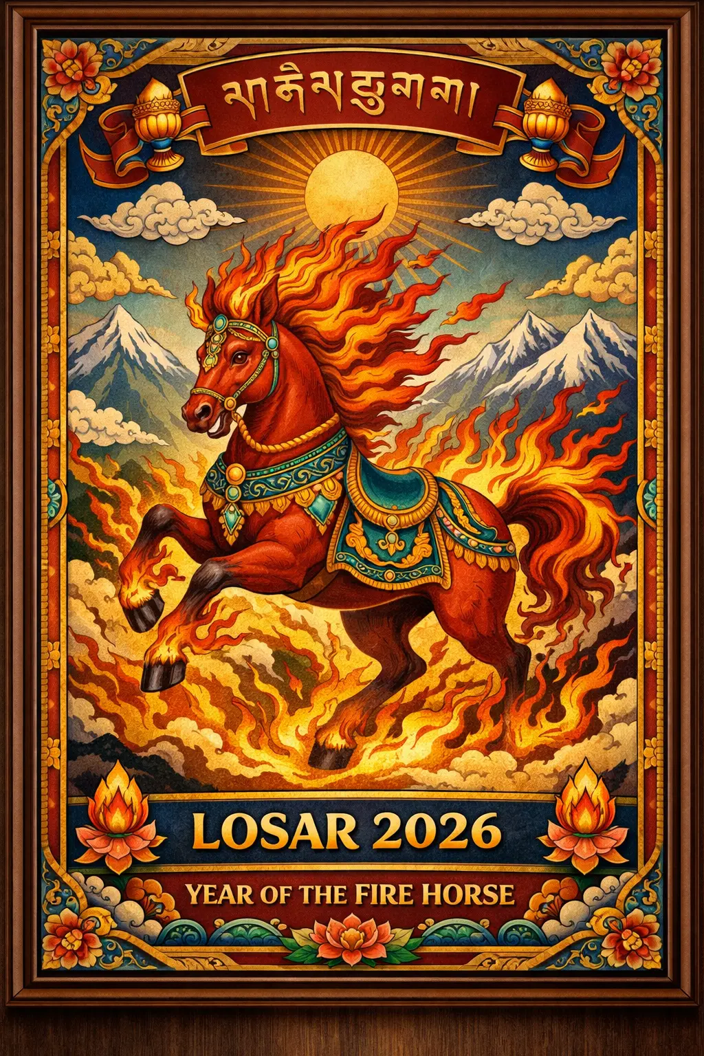 de overgang naar het Tibetaans Nieuwjaar, Losar 2153, te vieren: het jaar van het Vuur Paard.